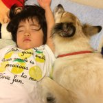 気付けばビフが娘に添い寝しててかわゆす♪ でも私の寝る場所がないorz https://twitter.com/asanos/status/788384645486301184/photo/1